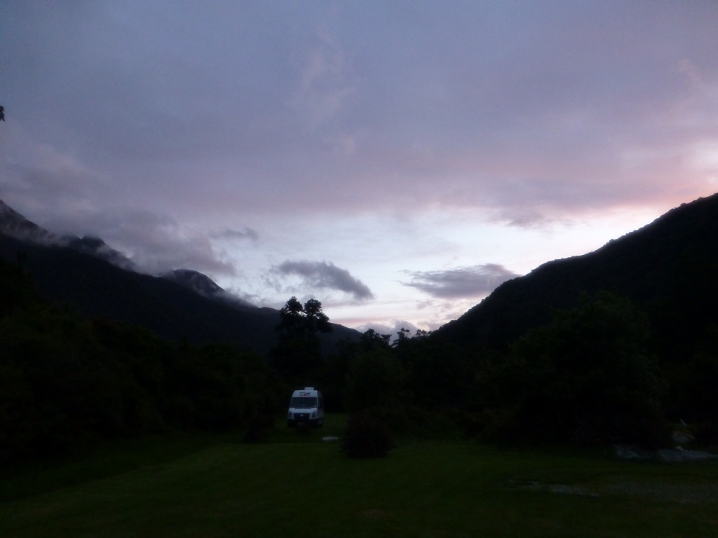 I set out from Hollyford camp by 8am with no wind but a little rain. Took the 8km gravel road back to the Milford intersection and headed into the climb. It was cold this morning, I could see my breath as soon as I started.