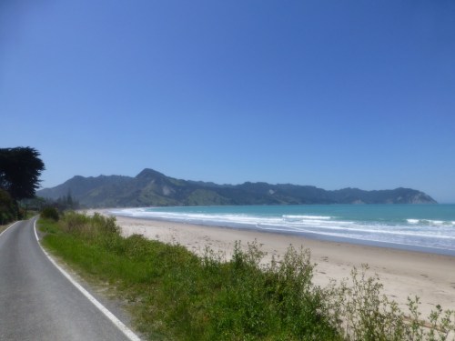 But finally, I make it back to the coast. I stop to catch my breath and stare at the sea and run into another cyclist going the opposite direction. Good to see I'm not the only one out suffering on these hills. There are far fewer touring cyclists here than on the South Island so sometimes I wonder. From here, the road hugs the coast for the next 200km and the views are fantastic. I am completely blown away by how phenomenal this area is. No traffic, absolutely beautiful weather and constant view of the sea. It may even be worth the week of hills.