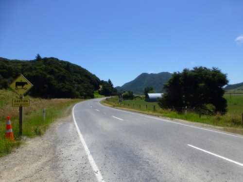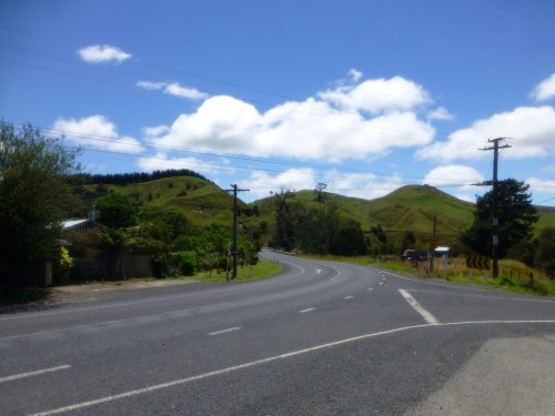 After this I drop down to Hick's Bay and the hills are no longer as tall but still just as steep. A head wind picks up somewhere around here and I'm finding I can't get my bike up 14% grades while fighting a wind so I am glad I can walk in these shoes. After fighting wind and steep hills through inland farm country for 50km I'm feeling a little down on my luck.