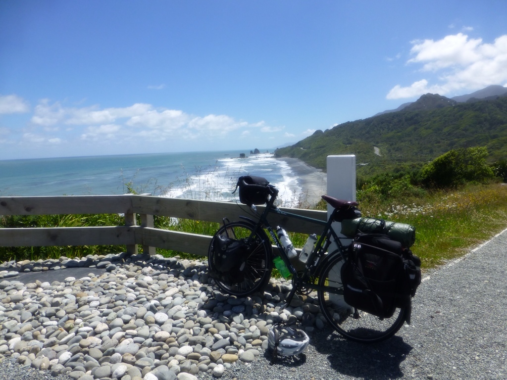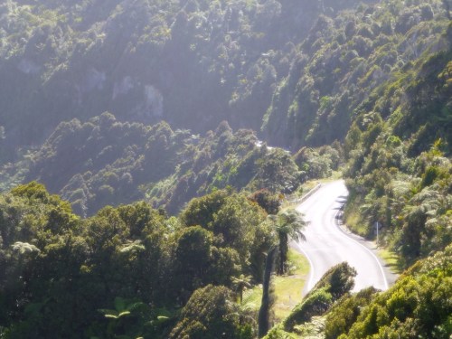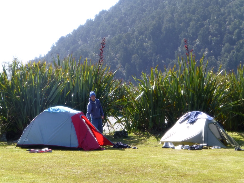 After lunch we pushed on without many exciting things other than the terrain until Fox Glacier. We restocked on groceries a bit and headed to the camp spot. Found the picnic area mentioned, saw the tracks to where the couple clearly camped the night before and, uh, also saw a no camping sign back at the entrance. We cooked dinner, lamented about paying the $20 or continuing down this long dirt road for a $6 shower-less DoC site.