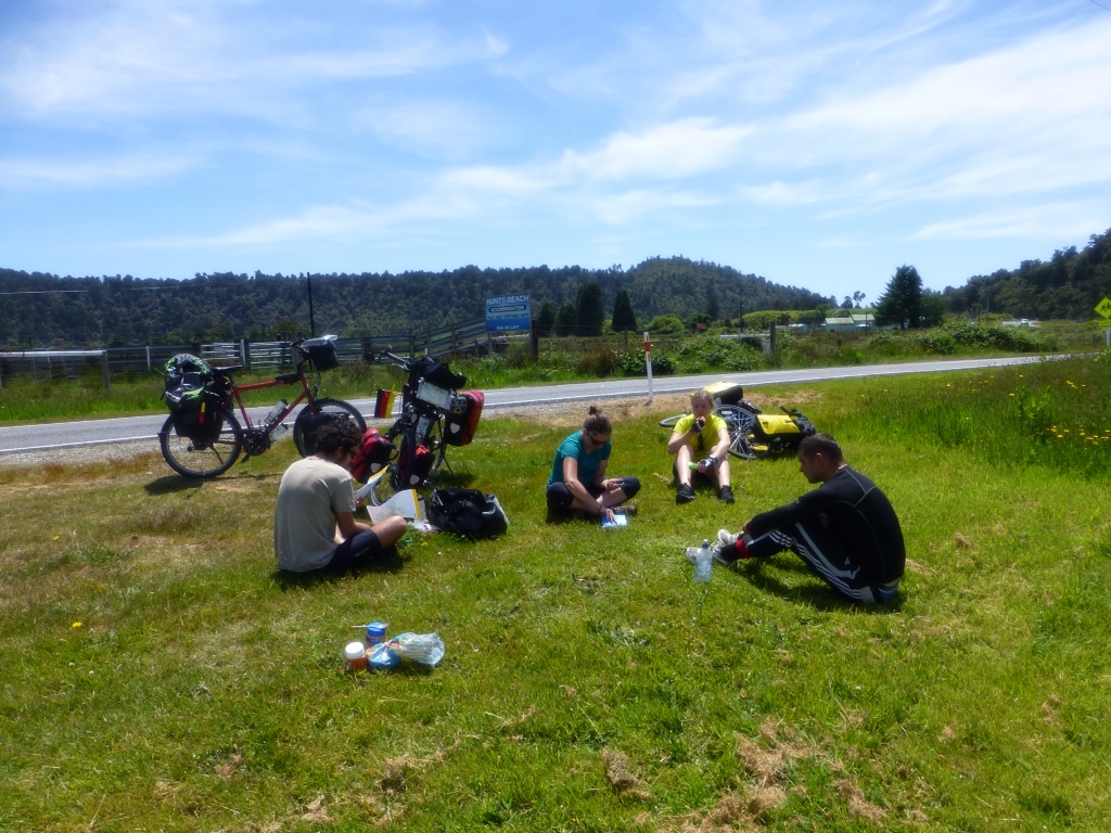 The push today was to make it to Fox Glacier, a tiny tourist town next to, well, the Fox Glacier. About 10km in we stopped for breakfast at a salmon farm and both ordered muffins titled “death by chocolate”.